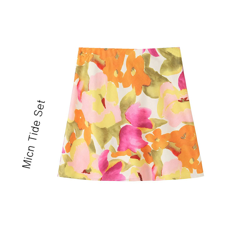 少女感十足高腰遮垮显腿长花色印花短裙女油画碎花显瘦短款A字裙
