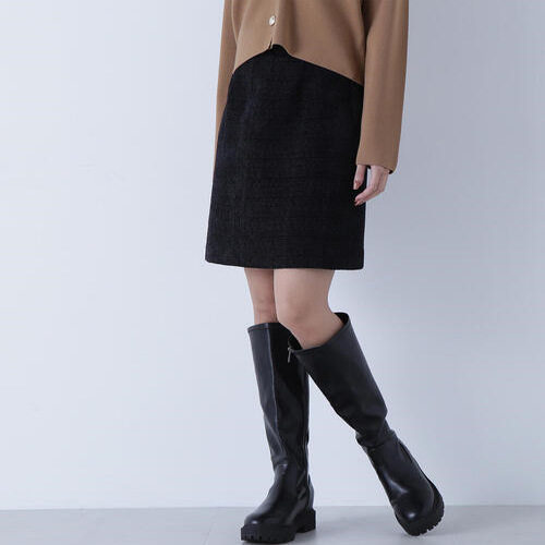 日本N+2025秋冬高腰显瘦粗呢花短裙高端外贸原单小香风直筒半身裙