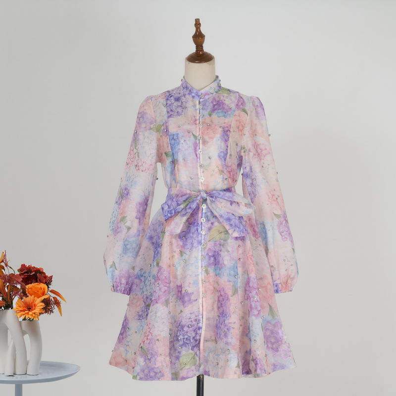 茬客【花蝴蝶】浪漫温柔连衣裙2025秋季新款方领蝴蝶印花短裙