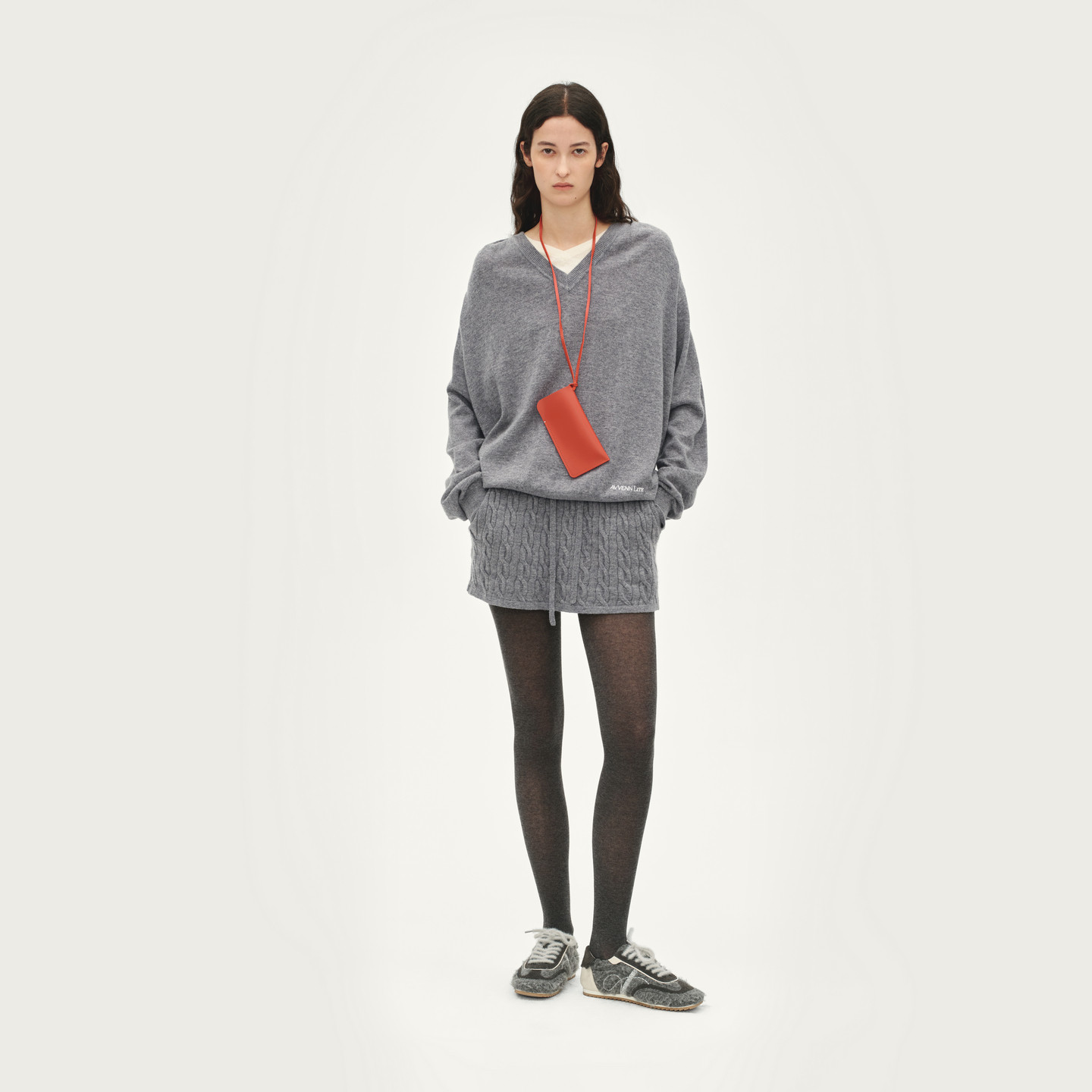 AVVENN设计师款假两件绞花短裙毛织套装AL92401540