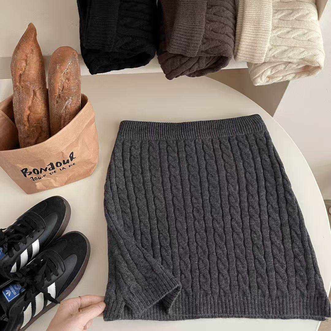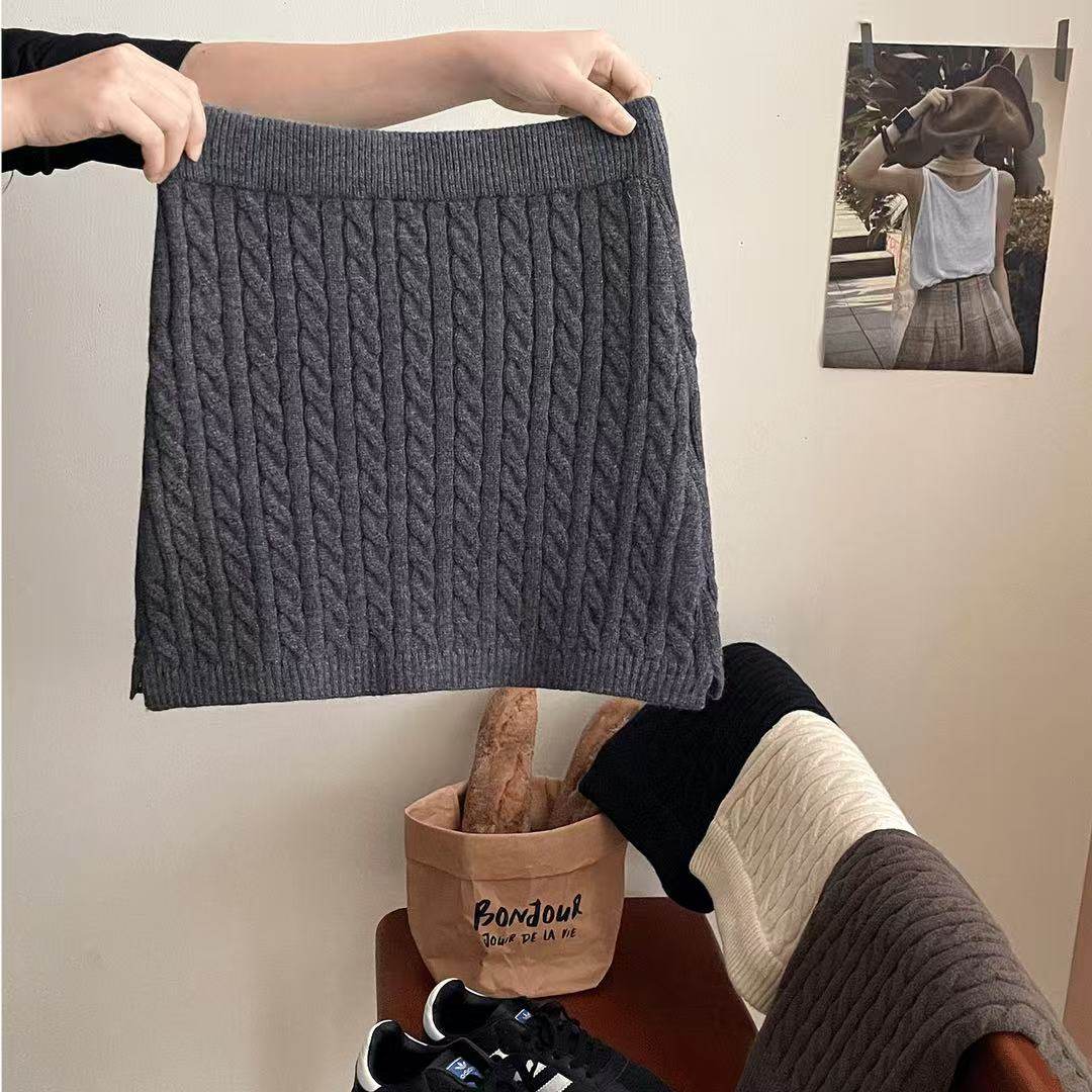 秋冬百搭纯色复古高腰包臀麻花短裙修身型半身裙高腰百搭裙子时尚