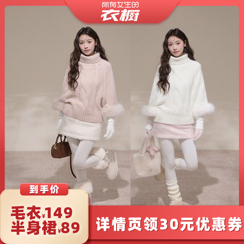 【所有女生的衣橱直播间】NCXK-绞花纹斗篷毛衣短裙A字裤裙