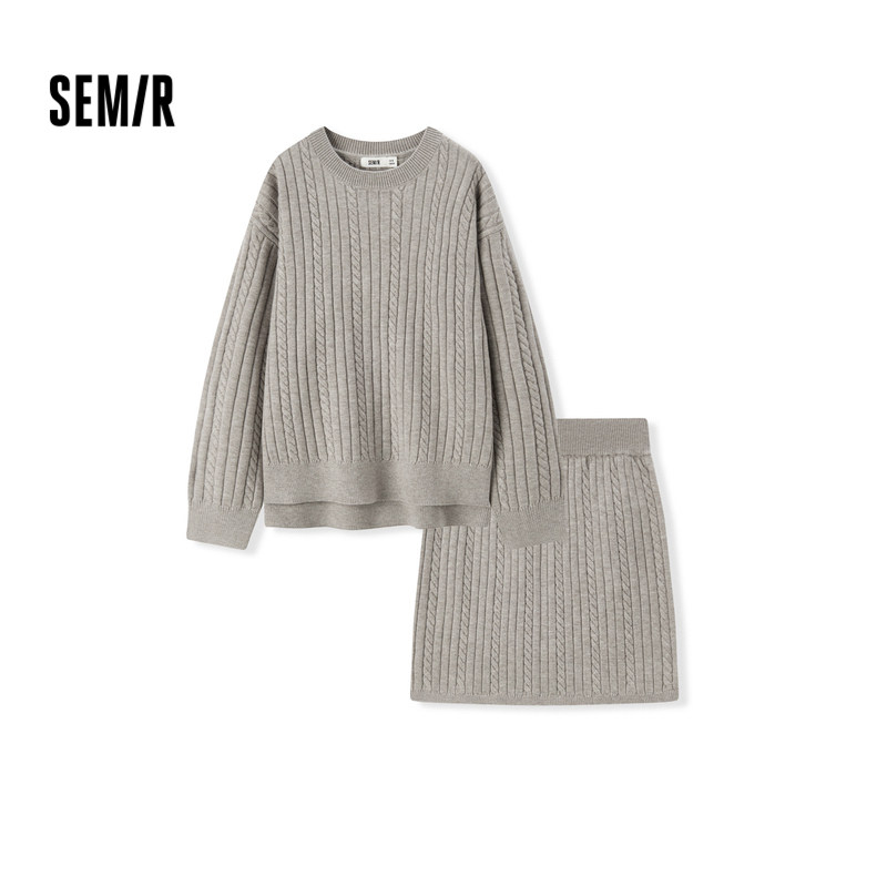 [商场同款]森马套装女圆领毛衫绞花短裙2024冬新款宽松两件套慵懒