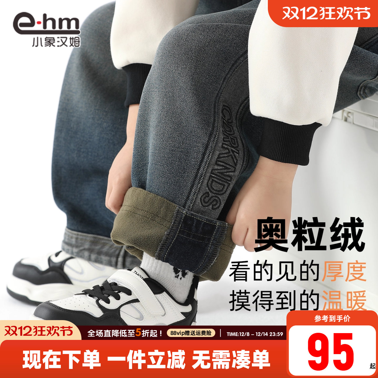 小象汉姆童装男童加绒牛仔裤冬装保暖长裤儿童直筒裤子2025新款冬