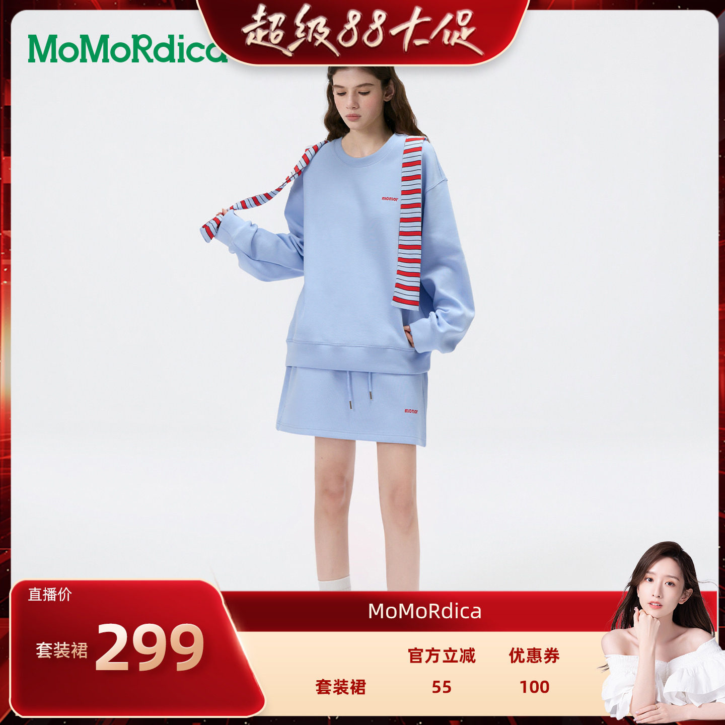 【晁然推荐】Momordica 条纹披肩高腰短裙搭配圆领卫衣套装女