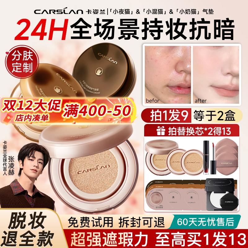 卡姿兰气垫遮瑕持久不脱妆粉底液bb霜小奶猫干皮服帖油皮官方正品