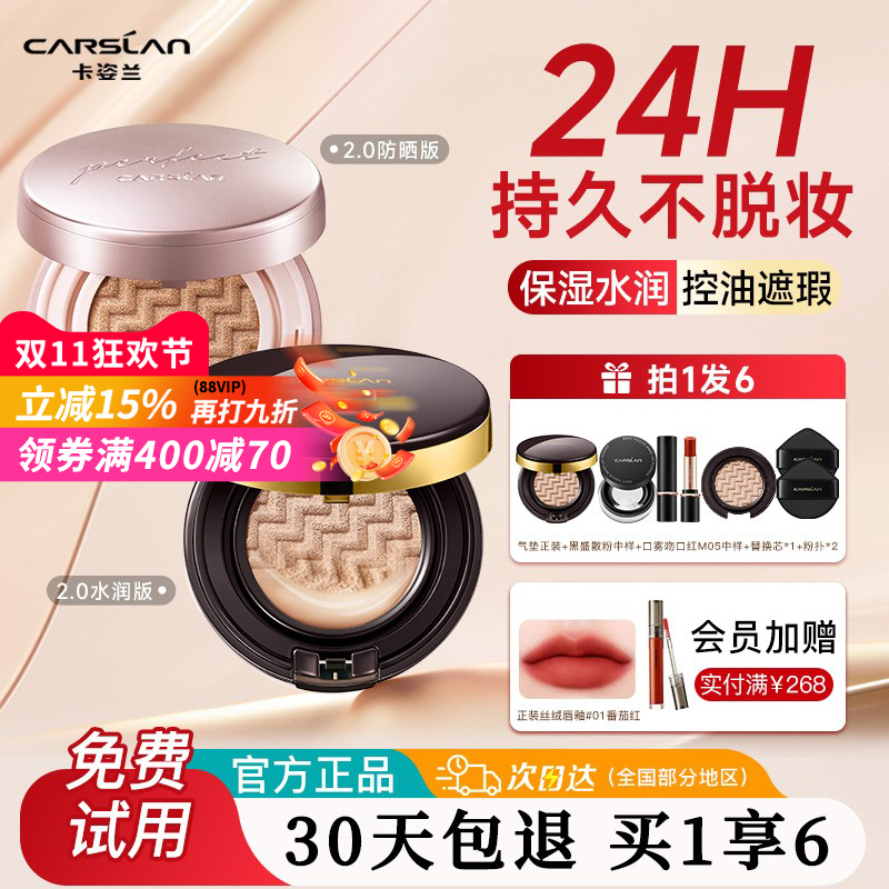 卡姿兰气垫遮瑕持久不脱妆秋冬粉底液bb霜小奶猫干皮油皮正品官方