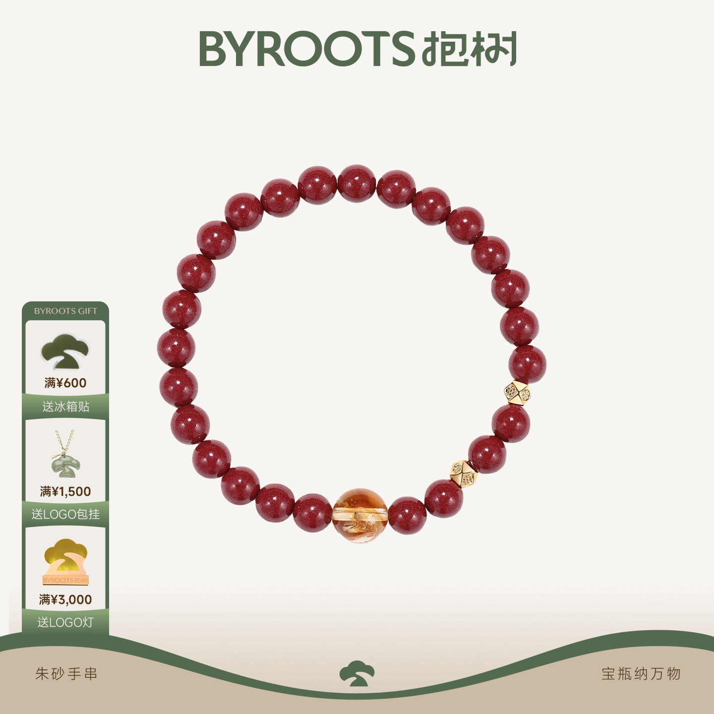 BYROOTS/抱树宝瓶纳万物新品紫金朱砂手串朱砂手串本命年礼物男女