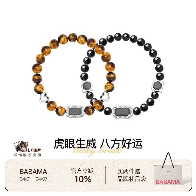 蒋易同款 babama黑曜石手串虎眼石情侣手链男士生日礼物送男友