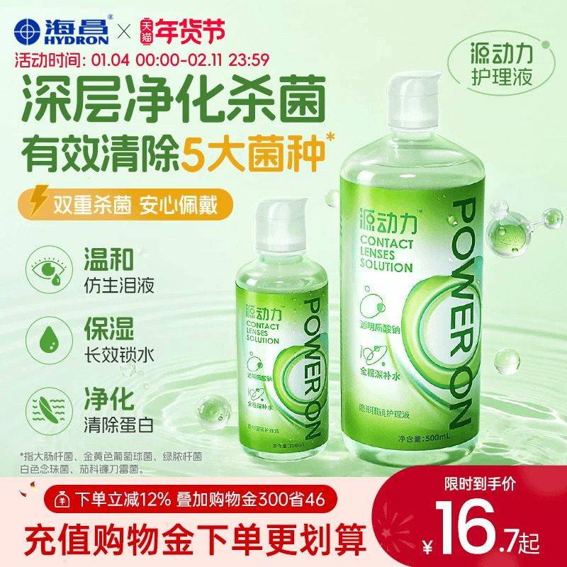 海昌源动力隐形眼镜护理液美瞳女小瓶近视专用杀菌款水润官方正品