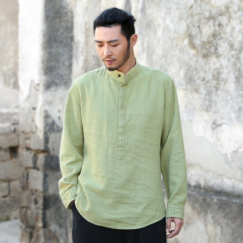 楠唐装中国风男装春季休闲衬衫男长袖打底衫中年复古中式上衣流光