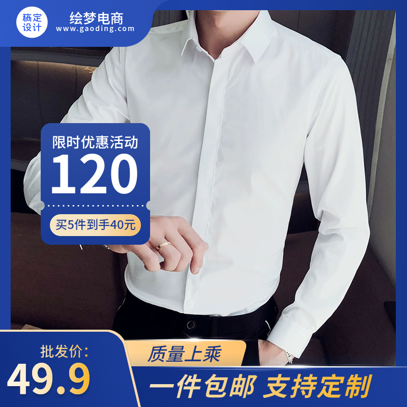 春季男士长袖白衬衫商务休闲短袖职业免烫正装结婚伴郎衬衣黑蓝寸