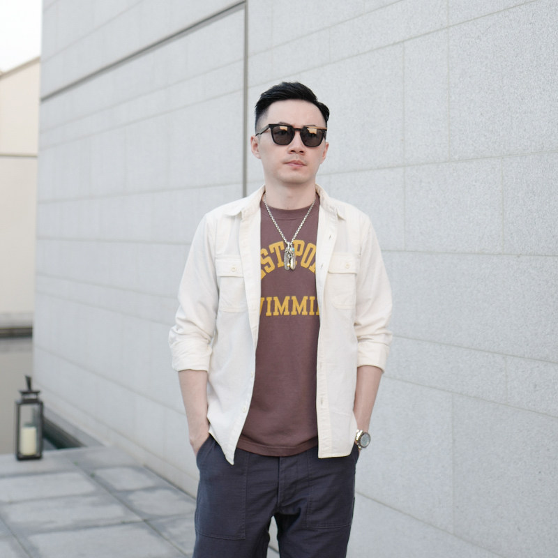 小溪原创复古工装休闲衬衫男长袖棉麻秋季米白色阿美咔叽潮流9-17