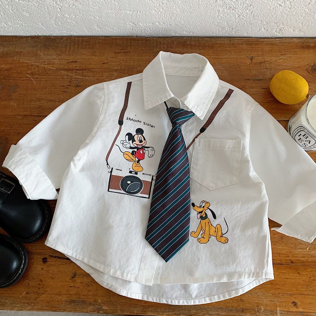 儿童休闲衬衫男长袖春季2026新款小童卡通上衣纯棉宝宝衬衣女洋气