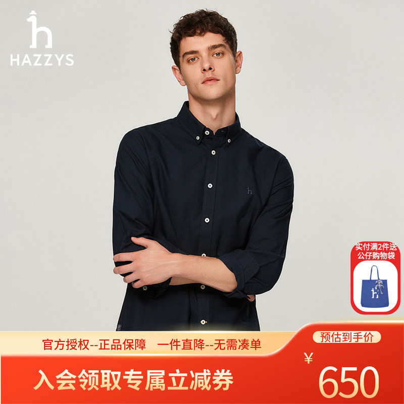 【挺括牛津纺】哈吉斯hazzys品牌直销秋季新款休闲衬衫男长袖衬衣