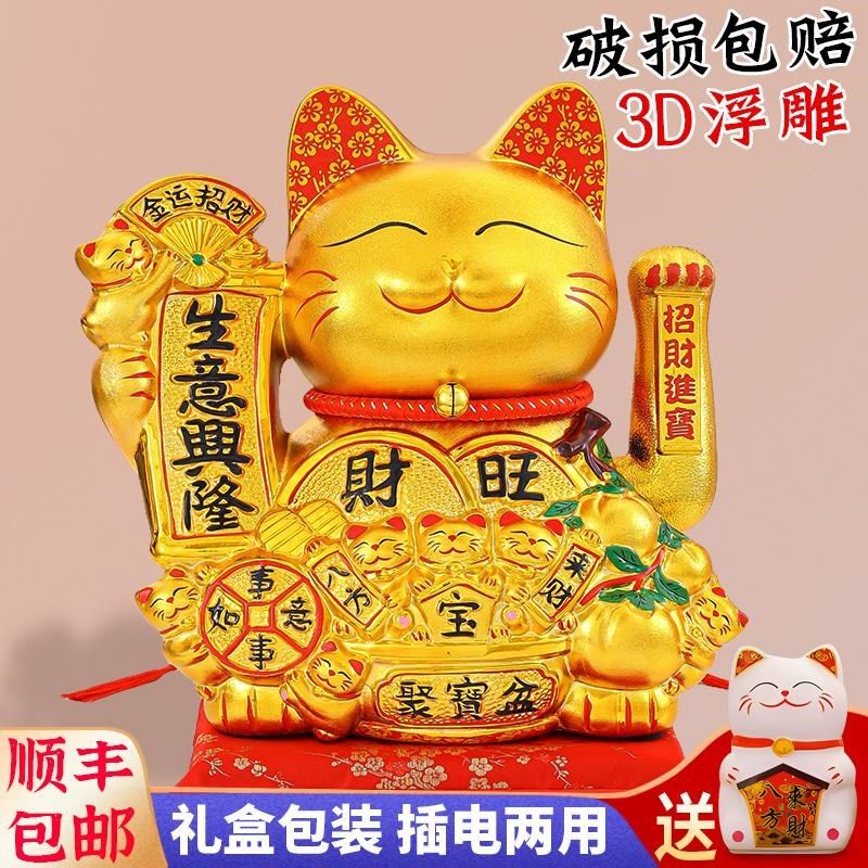 金色招财猫摆件电动摇手发财猫特大号开业陶瓷摆件店铺开业18寸