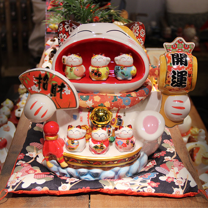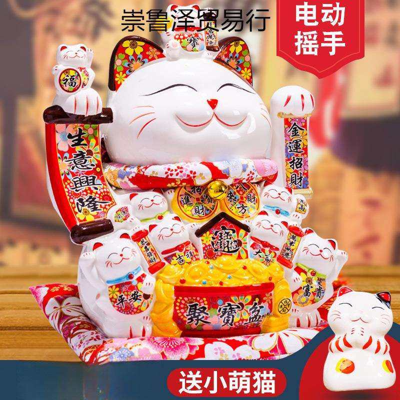 特大号招财猫自动手摆件瓷店铺收招银台装型饰20030516开业陶乔迁