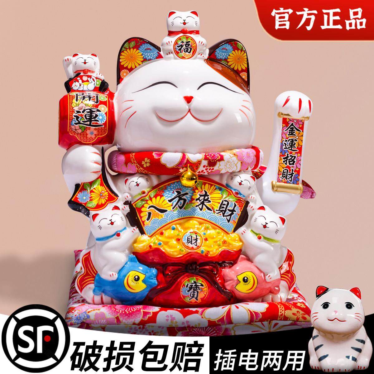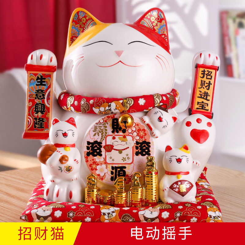 招财猫摆件店铺开业礼品家居收银台自动招手摇手陶瓷特大号发财猫