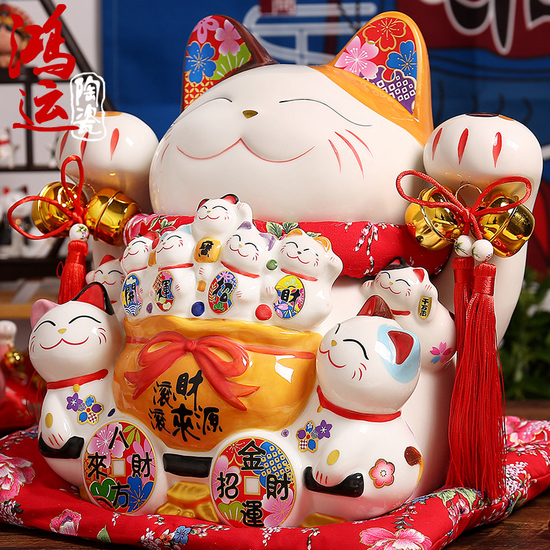 日本招财猫摆件八方来财店铺开业礼品特大号陶瓷存钱罐家居装饰品