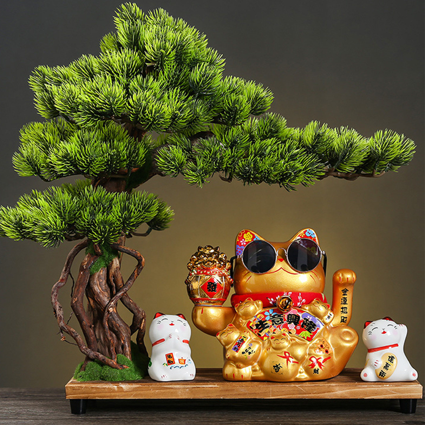 迎客松招财猫摆件开业自动摇招手新店铺收银前台特大号入户发财猫