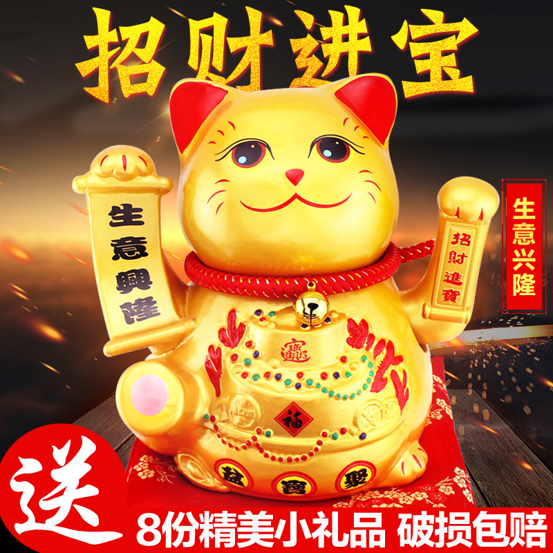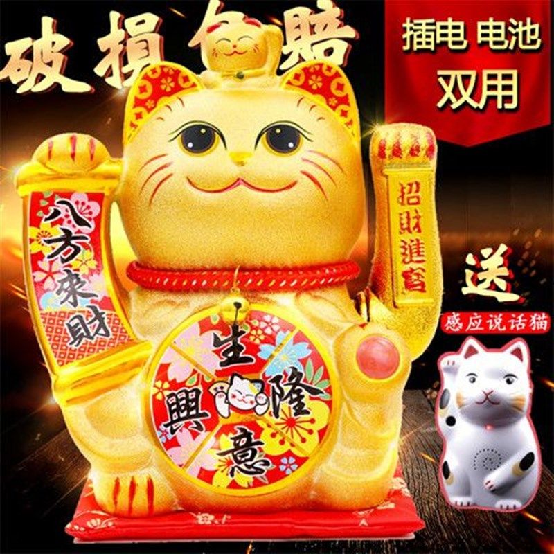 陶瓷说话招财猫摆件摇手开业送礼店铺储蓄罐特大号金色电动发财猫