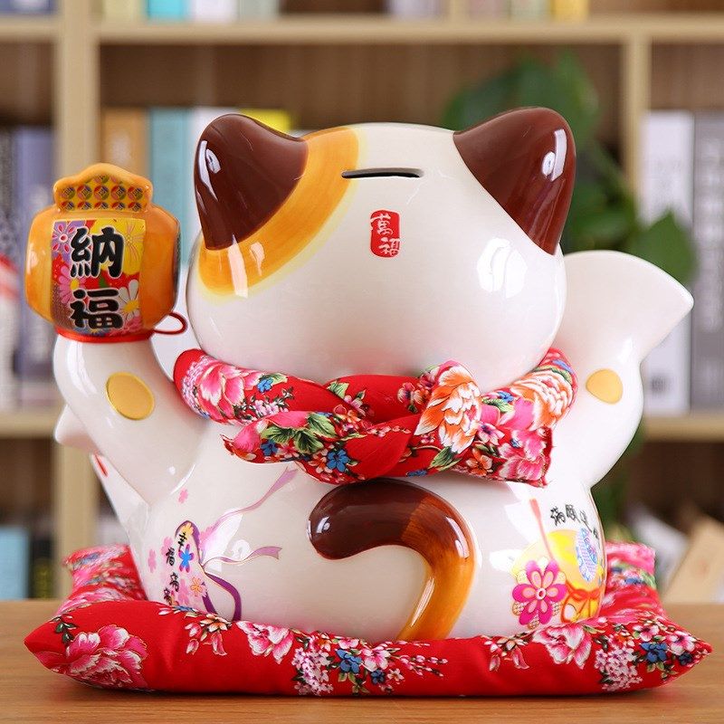 招财猫乔迁客厅加大码陶瓷摆件储蓄罐开业礼物特大号发财猫存钱罐