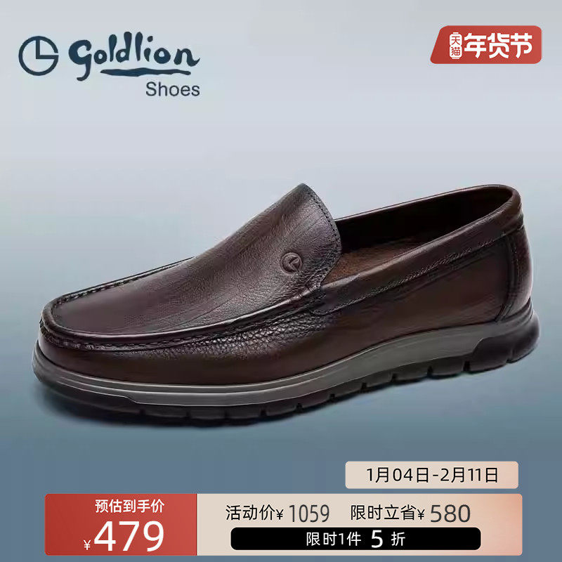 梦特娇冬季休闲爸爸皮鞋懒人头层牛皮正品高档软底商务乐福豆豆鞋