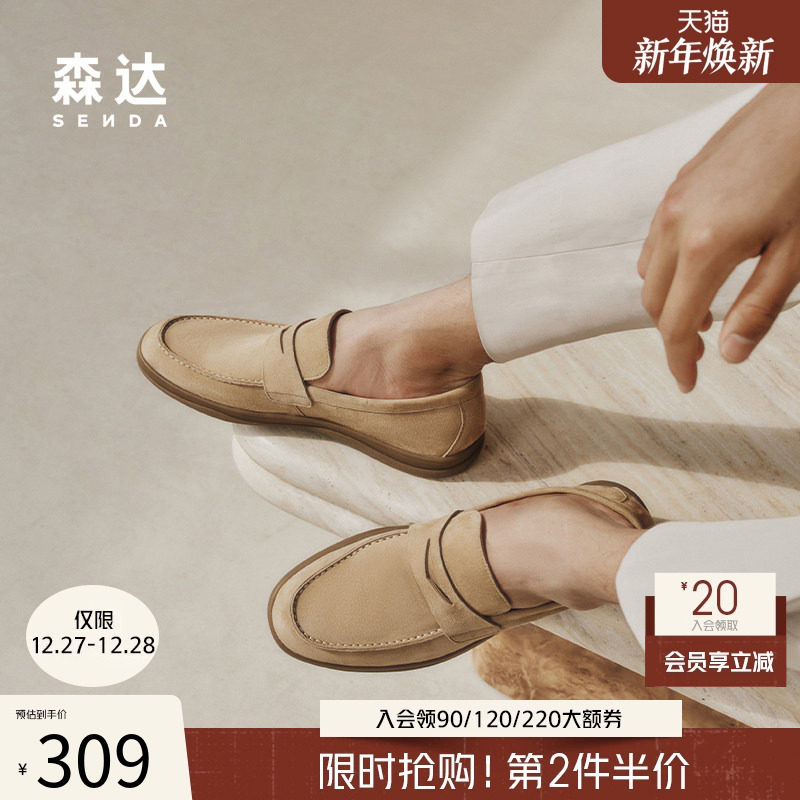 森达男鞋休闲皮鞋商场同款乐福鞋懒人一脚蹬老钱风豆豆鞋K1P02BM4
