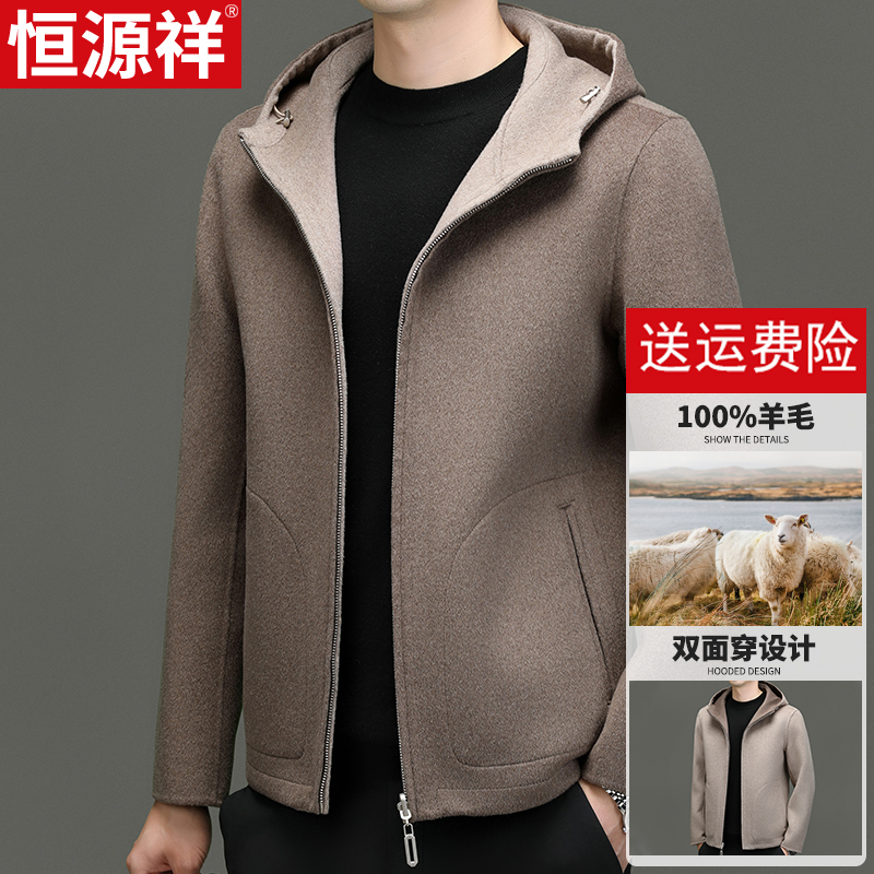 恒源祥毛呢外套连帽男士双面穿高端男装休闲羊毛呢子大衣短款秋冬