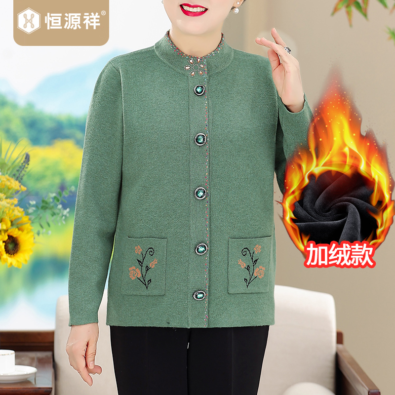恒源祥中老年女装冬装国风外套洋气妈妈新中式水貂绒高贵大衣加厚