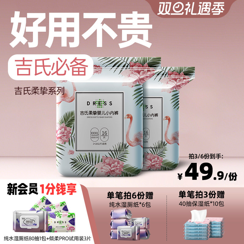 吉氏柔挚超薄干爽拉拉裤XXXL32片秋冬透气婴儿学步裤男女宝尿不湿