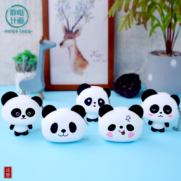 熊猫拉链硅胶零钱包卡通可爱表情硬币女迷你便携小钱包送女生礼物