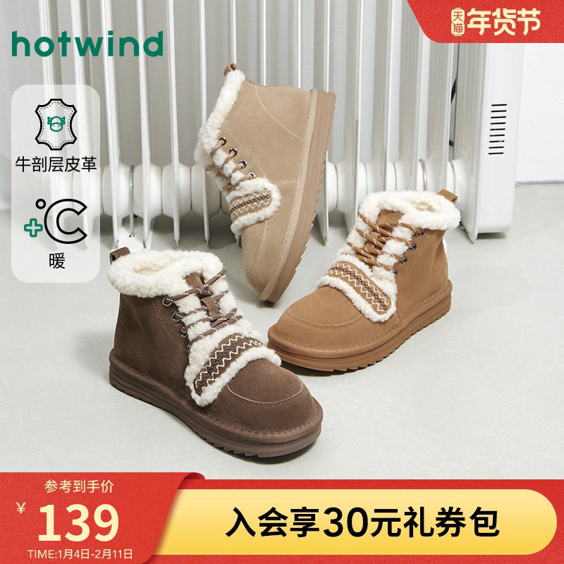 热风复古雪地靴女鞋2025年冬季新款休闲毛毛鞋百搭短靴子保暖棉鞋