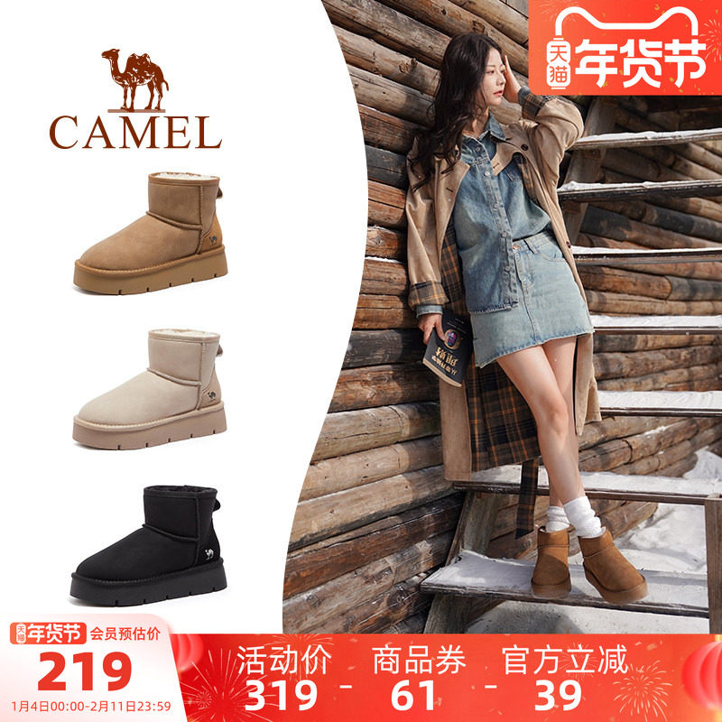 骆驼女鞋冬季鞋子厚底雪地靴女加绒鞋加厚保暖棉鞋靴子毛毛鞋短靴