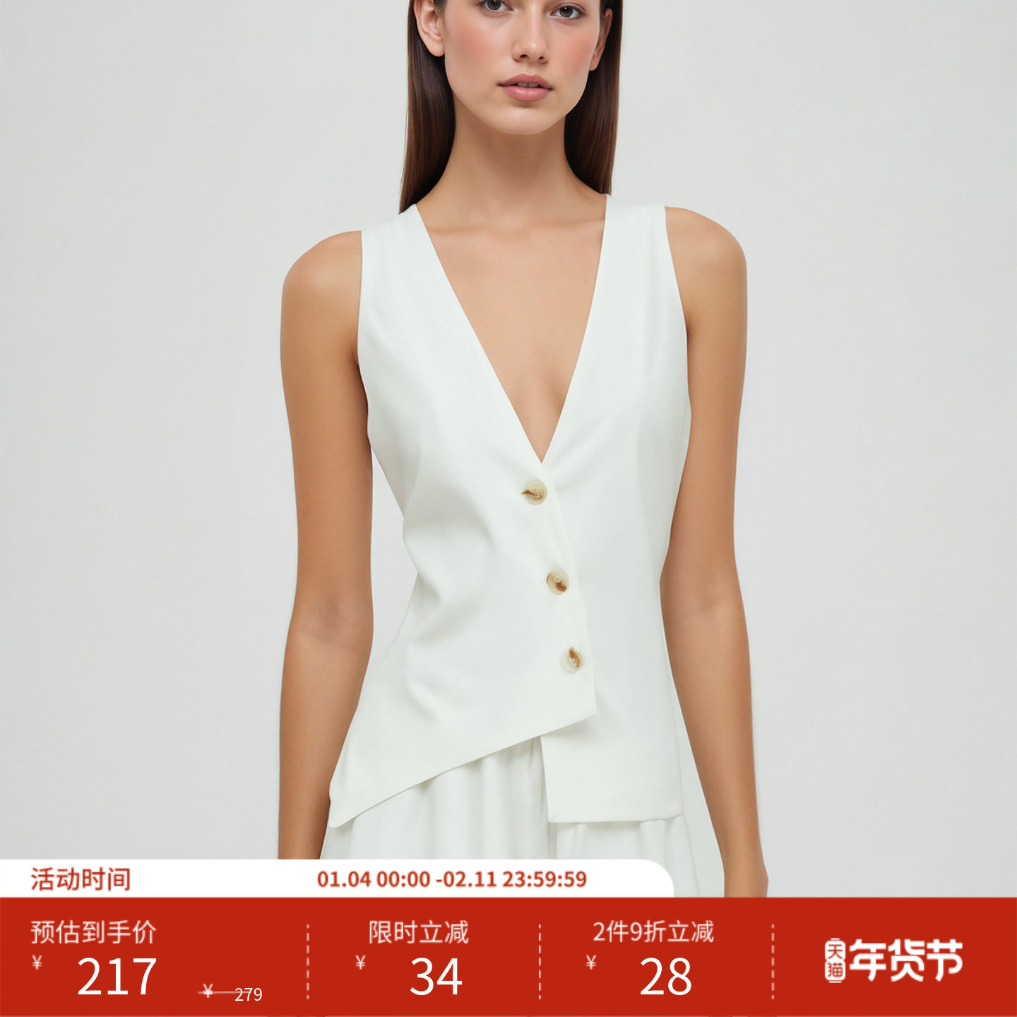CIDER 亚麻不对称下摆系带背心短裤套装女装114460610