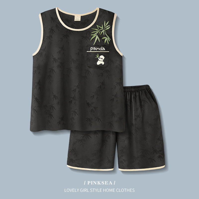 2024夏季冰丝背心短裤套装女薄款睡衣大码宽松显瘦外穿休闲两件套