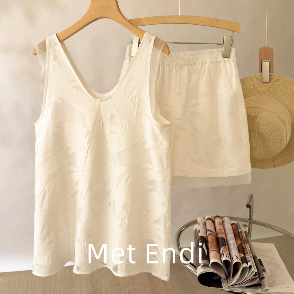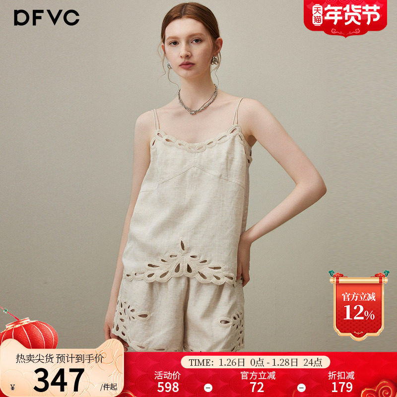 dfvc天丝亚麻镂空吊带背心短裤套装女2026年春季新款度假风两件套