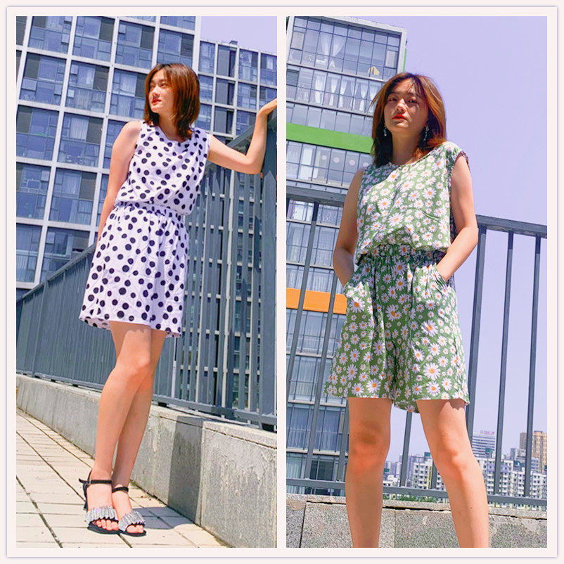 梵高七月夏装新款甜美田园宽松纯棉居家服打底吊带背心短裤套装女