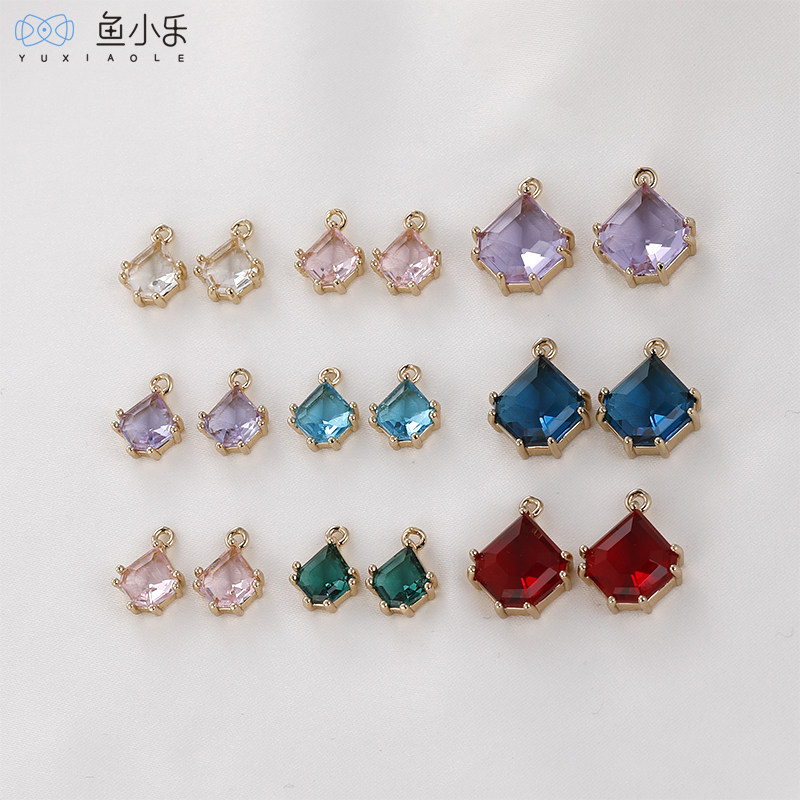 14k电镀真金保色多彩几何镶锆石双吊玻璃吊坠diy手链项链耳饰配件