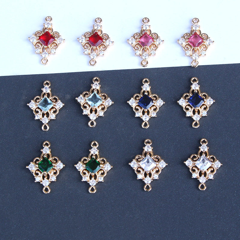 铜微镶锆石保色铜云边菱形双孔稀土玻璃吊坠耳环项链手链发簪材料