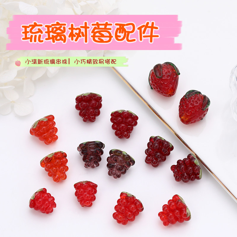 仿真小树莓玻璃吊坠diy手作精致小巧耳环项链手链串珠可爱材料