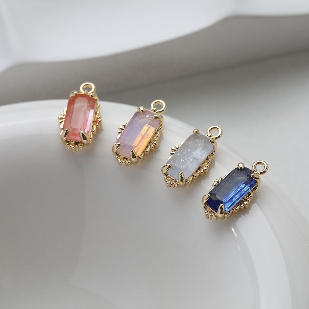 14K电镀真金保色复古长方形玻璃吊坠diy手作串珠耳饰材料配件