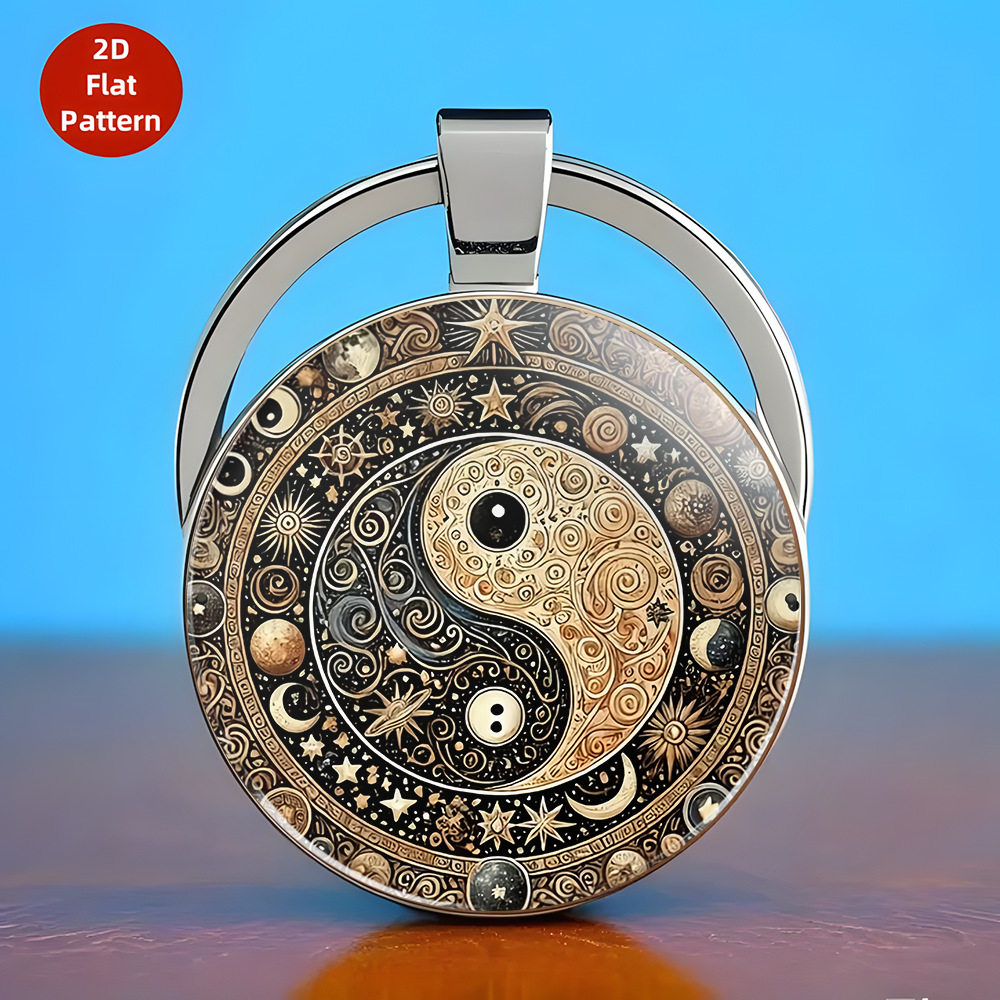 跨境新款阴阳风水时光宝石钥匙扣挂件复古欧美时尚玻璃吊坠钥匙扣