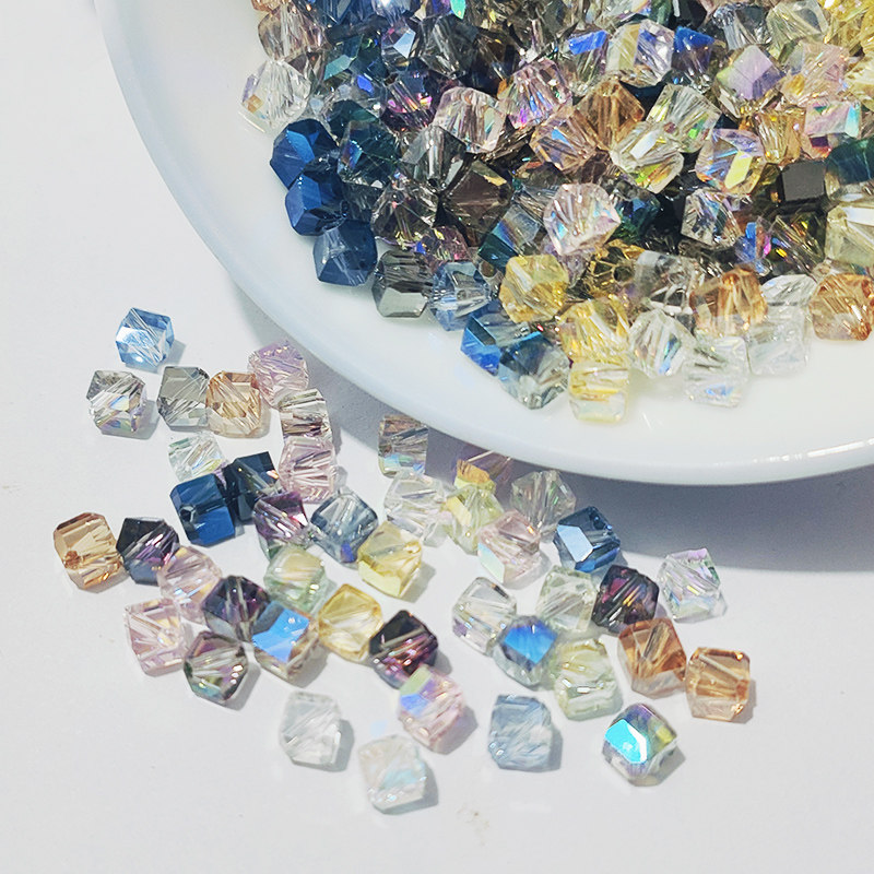 斜孔方糖仿水晶水钻DIY手工制作项链手链精品玻璃吊坠配件材料4mm