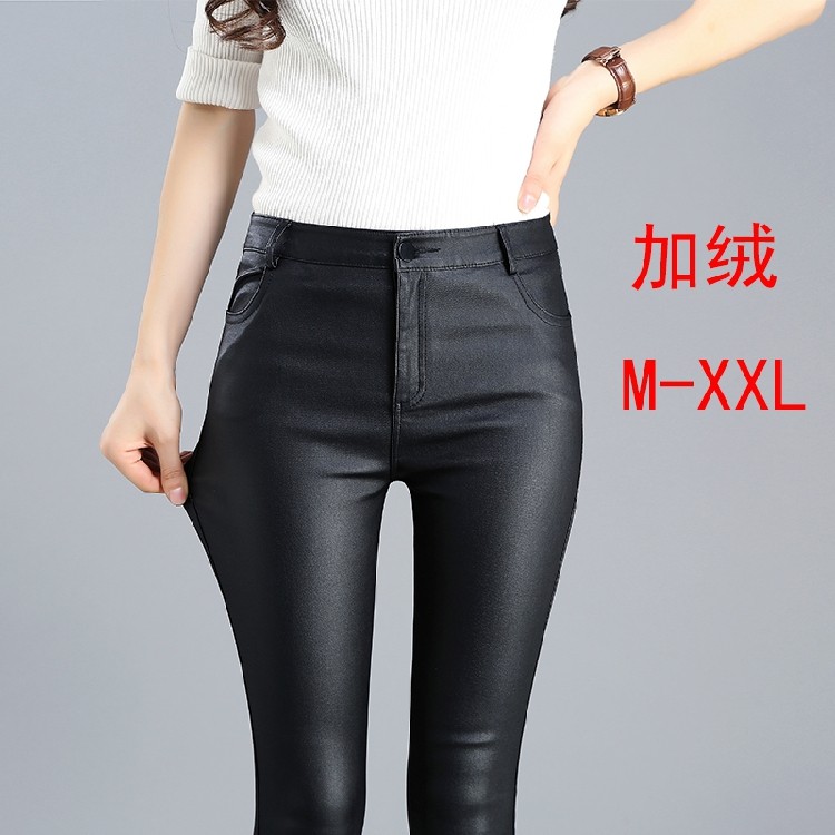 [美丽推荐]冬季新款韩版休闲修身弹力高腰加绒显瘦皮裤小脚铅笔裤