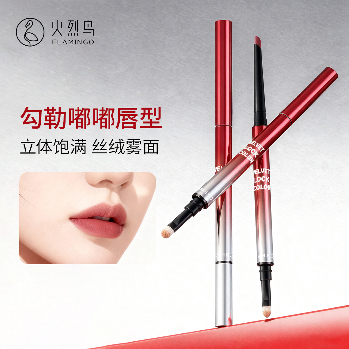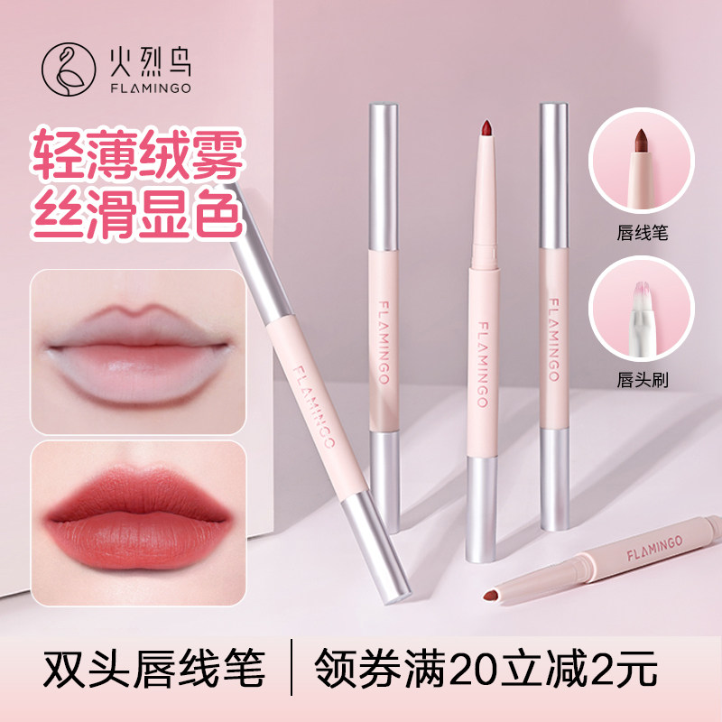 火烈鸟双头唇线笔自动旋转雾面哑光嘟嘟唇不易脱妆口红笔勾勒唇形