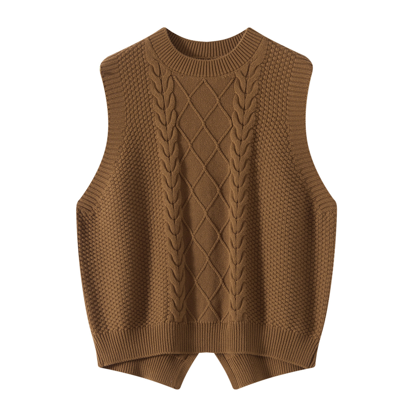 100%纯羊毛衫马甲女圆领麻花针织无袖毛衣背心宽松羊绒衫叠穿坎肩