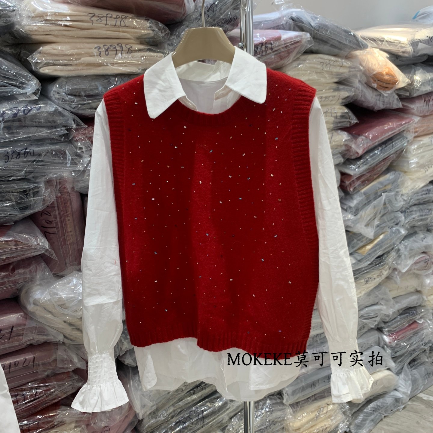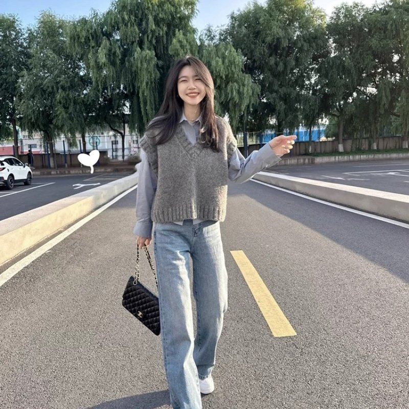 2025春秋款叠穿新款宽松复古针织毛衣马甲女背心韩版百搭外穿L