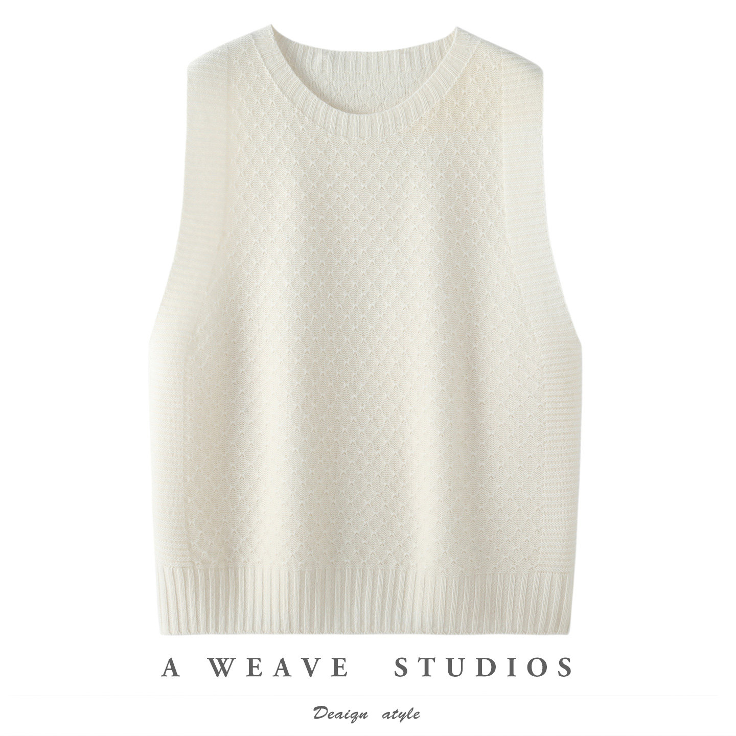 空气层圆领羊绒针织马甲女秋冬叠穿无袖开衫毛衣背心宽松羊毛坎肩