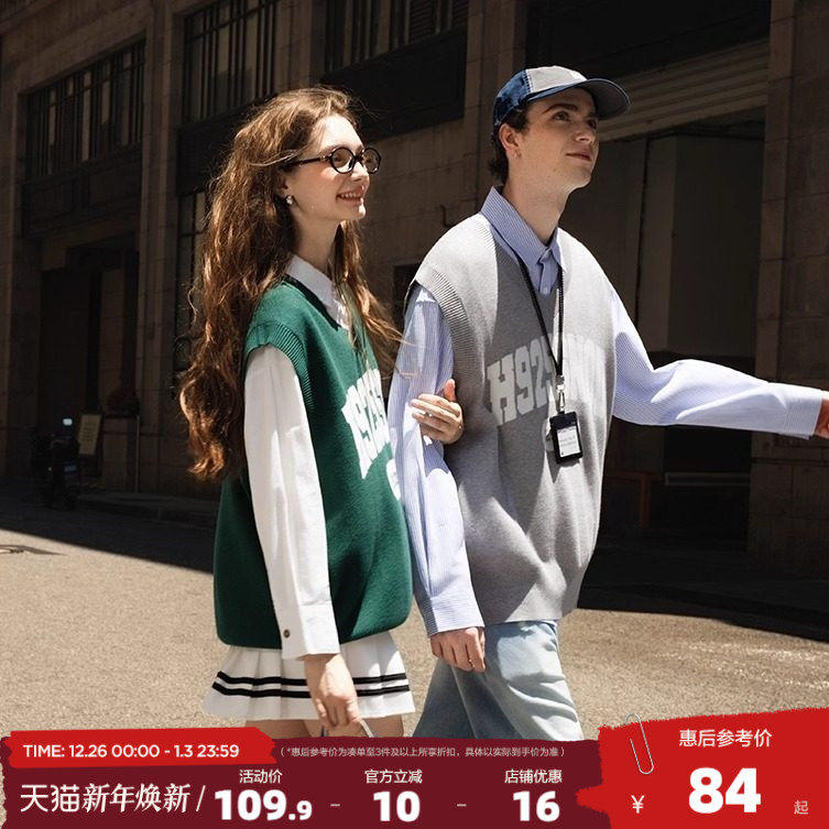 唐狮2025春秋季情侣针织马甲男女V领毛衣背心宽松学院风新年衣服